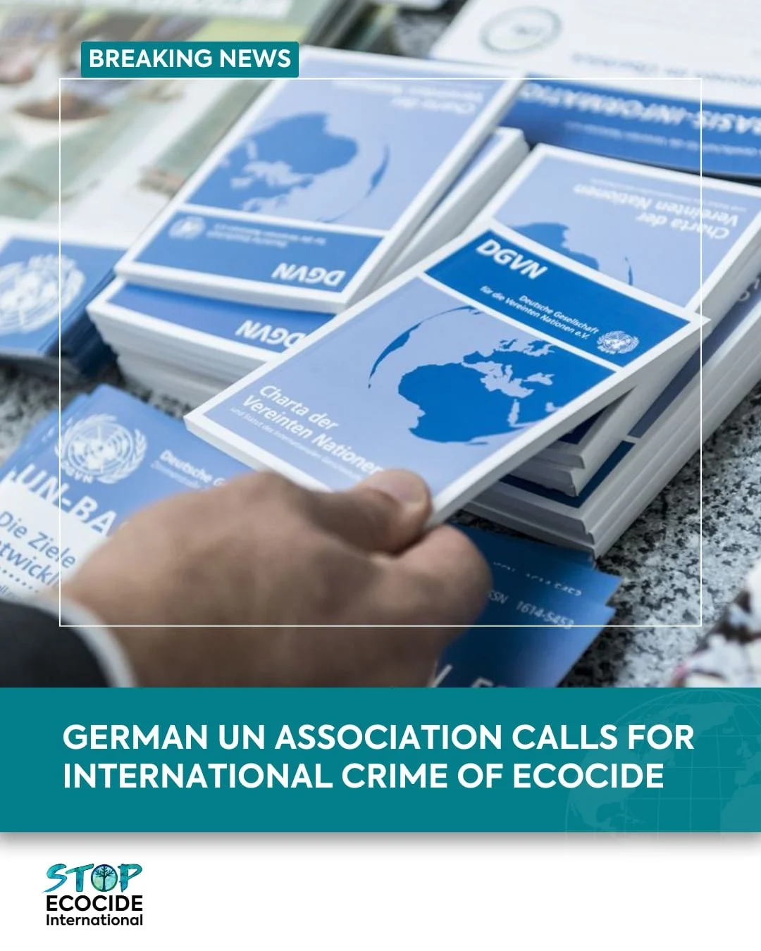 Los días 15 y 16 de noviembre de 2024, la Asamblea General de la Asociación de las Naciones Unidas de Alemania (DGVN, por sus siglas en alemán), máximo órgano de decisión de la asociación, aprobó una moción de apoyo al reconocimiento del ecocidio como crimen internacional en la Corte Penal Internacional (CPI).
